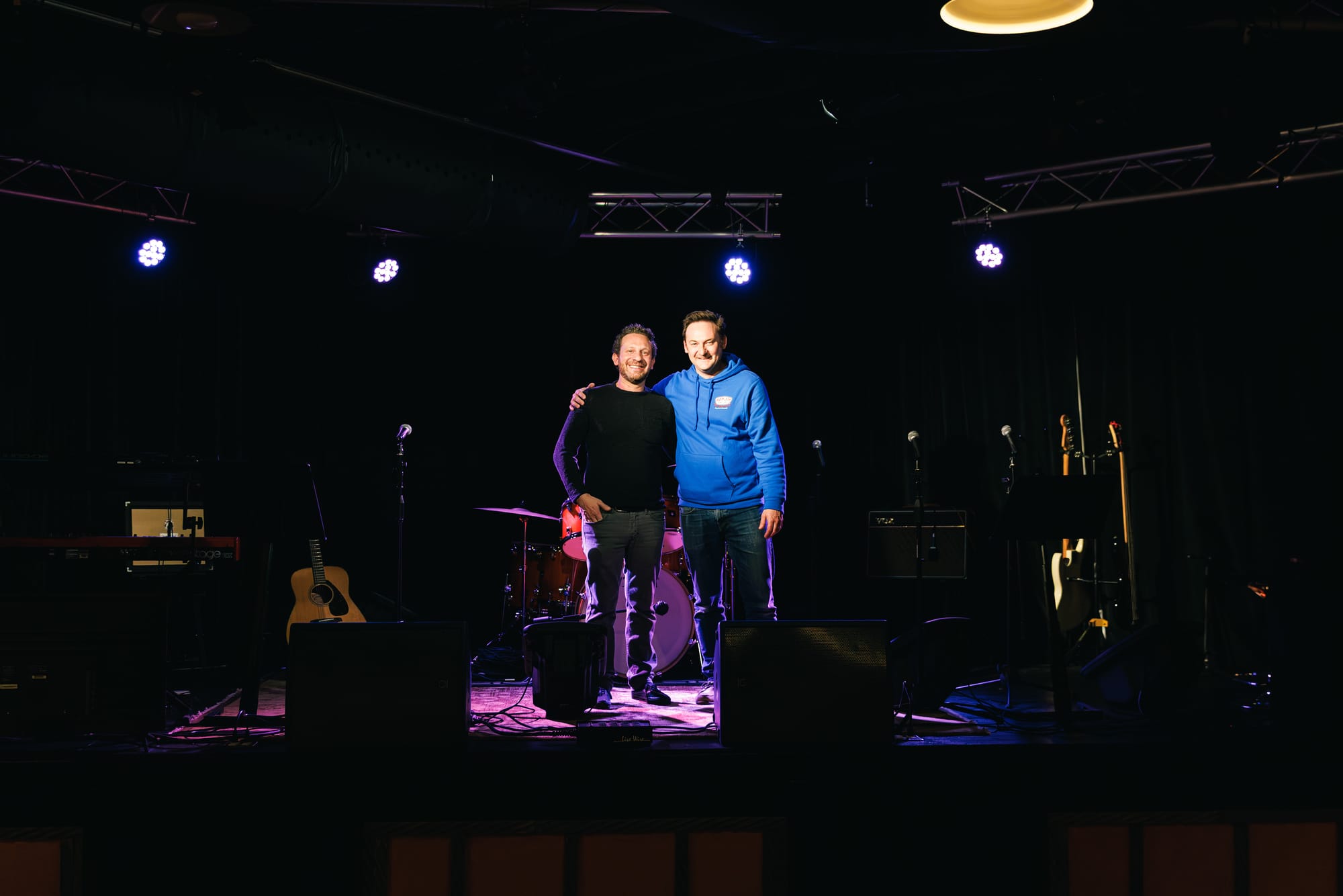 Jared Loss (L) and Mike Gaydos (R) on stage at The Mill at Rockdale in January 2026. Photo by Conor Clancy